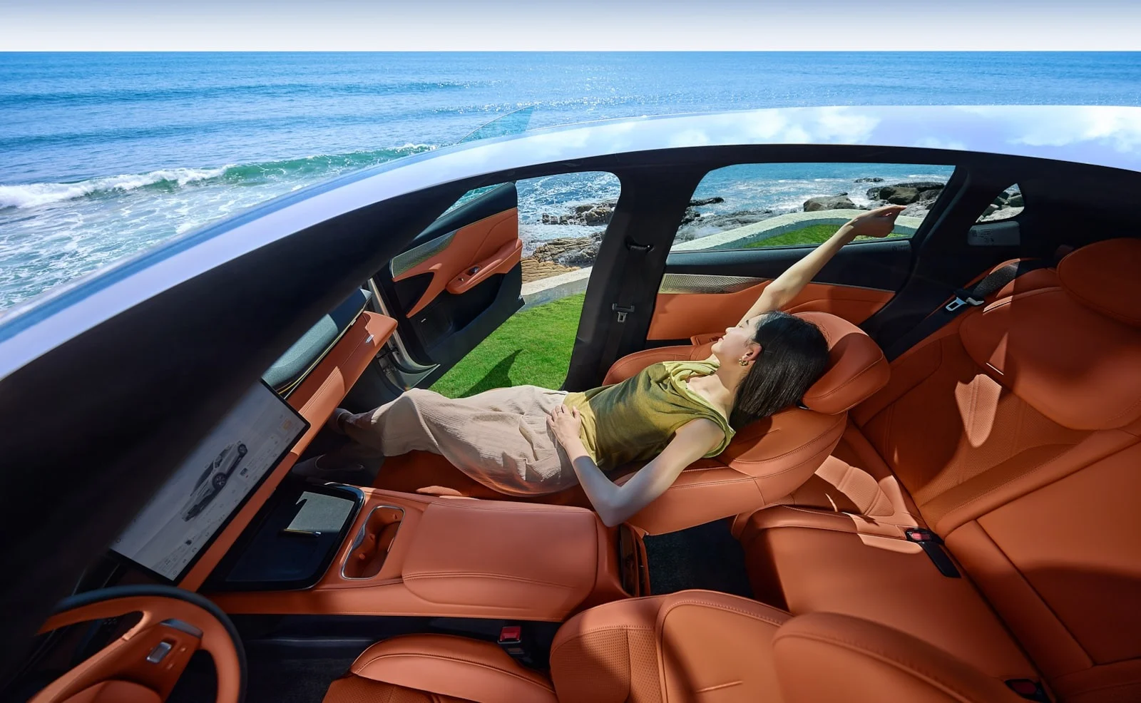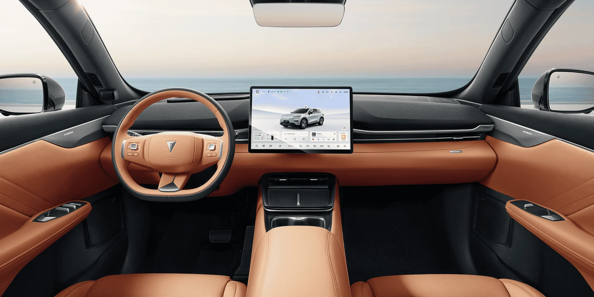 L’intérieur du Changan Deepal S05 est un véritable sanctuaire de technologie et de confort. Doté d’un empattement généreux de 2880 mm, il offre un espace exceptionnel pour les cinq passagers. Le cockpit numérique est centré autour d’un impressionnant écran tactile central de 15.4 pouces (certaines versions disposent d’un 17.7 pouces) qui peut être orienté vers le conducteur ou le passager, intégrant Apple CarPlay et Android Auto, ainsi qu’un système audio premium à 8 ou 14 haut-parleurs. L’absence de tableau de bord traditionnel est compensée par un affichage tête haute (AR-HUD) avec réalité augmentée, projetant les informations essentielles directement dans votre champ de vision, pour une sécurité et une immersion accrues. Des fonctionnalités telles que la recharge sans fil pour smartphone, des sièges avant chauffants et ventilés, un toit panoramique en verre de 1.9 m², et même des sièges « Zero-Gravity » sur certaines finitions, garantissent un confort optimal sur chaque trajet. Avec un volume de coffre de 492 litres, extensible à 1250 litres, et un « frunk » (coffre avant) de 159 litres, le Deepal S05 est parfaitement adapté aux besoins des familles et aux activités de loisirs en Israël.