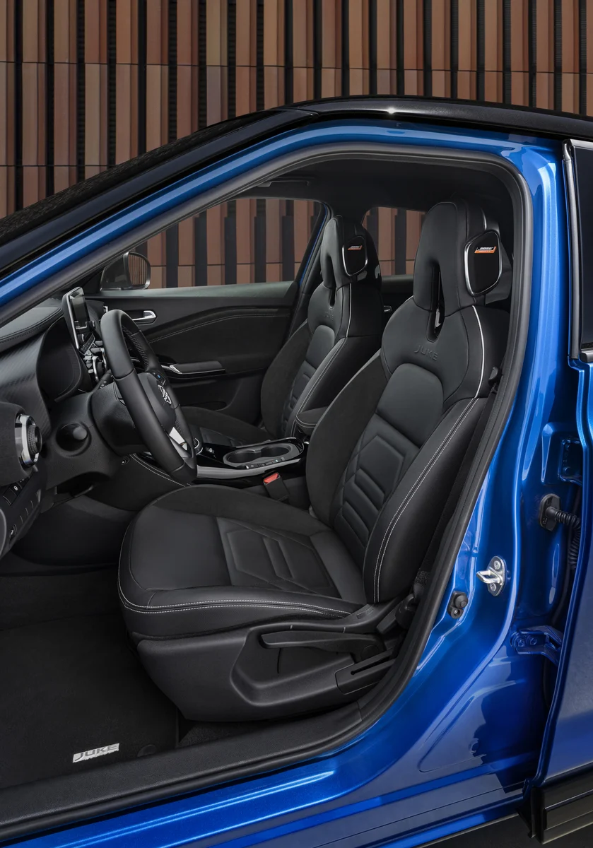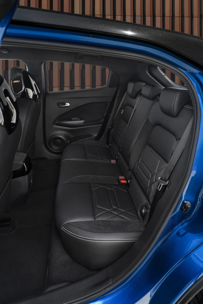 Ć l’intĆ©rieur, le Juke propose un habitacle moderne avec des matĆ©riaux de qualitĆ© et des technologies avancĆ©es. L’Ć©cran tactile central permet d’accĆ©der aux fonctionnalitĆ©s multimĆ©dias, incluant Apple CarPlay et Android Auto. L’espace pour les passagers est confortable, bien que l’arriĆØre soit un peu limitĆ© pour les grandes tailles. Le volume du coffre est Ć©galement raisonnable pour un crossover de cette catĆ©gorie.